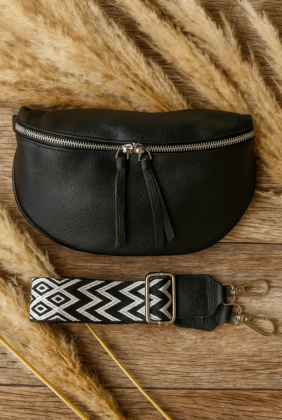 Sac banane cuir noir